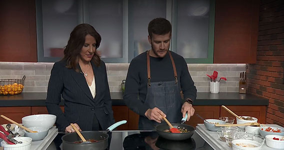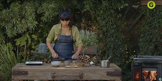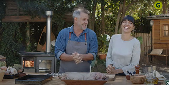 Participación en el vestuario de Christian Petersen y Felicitas Pizarro en Dos Fuegos, el programa donde se juntan para traernos una gran variedad de recetas con cocción a leña.